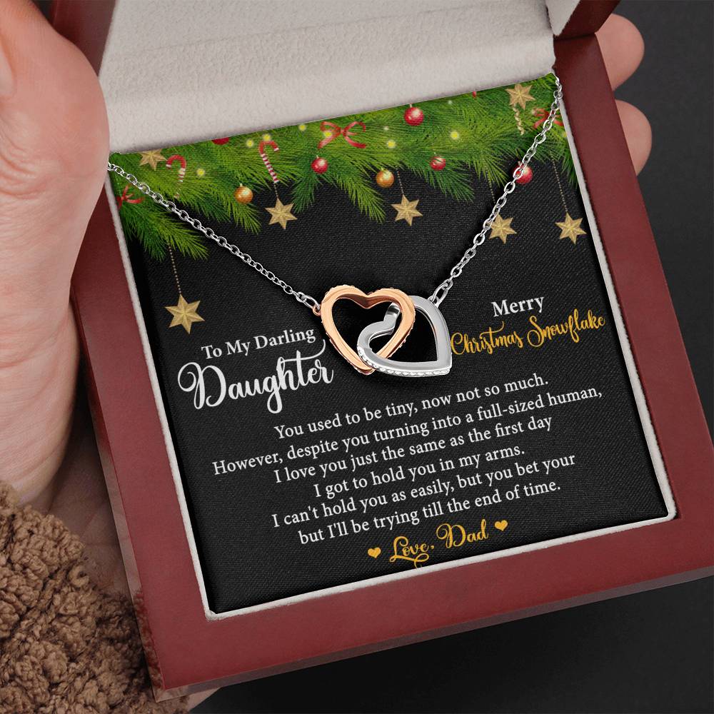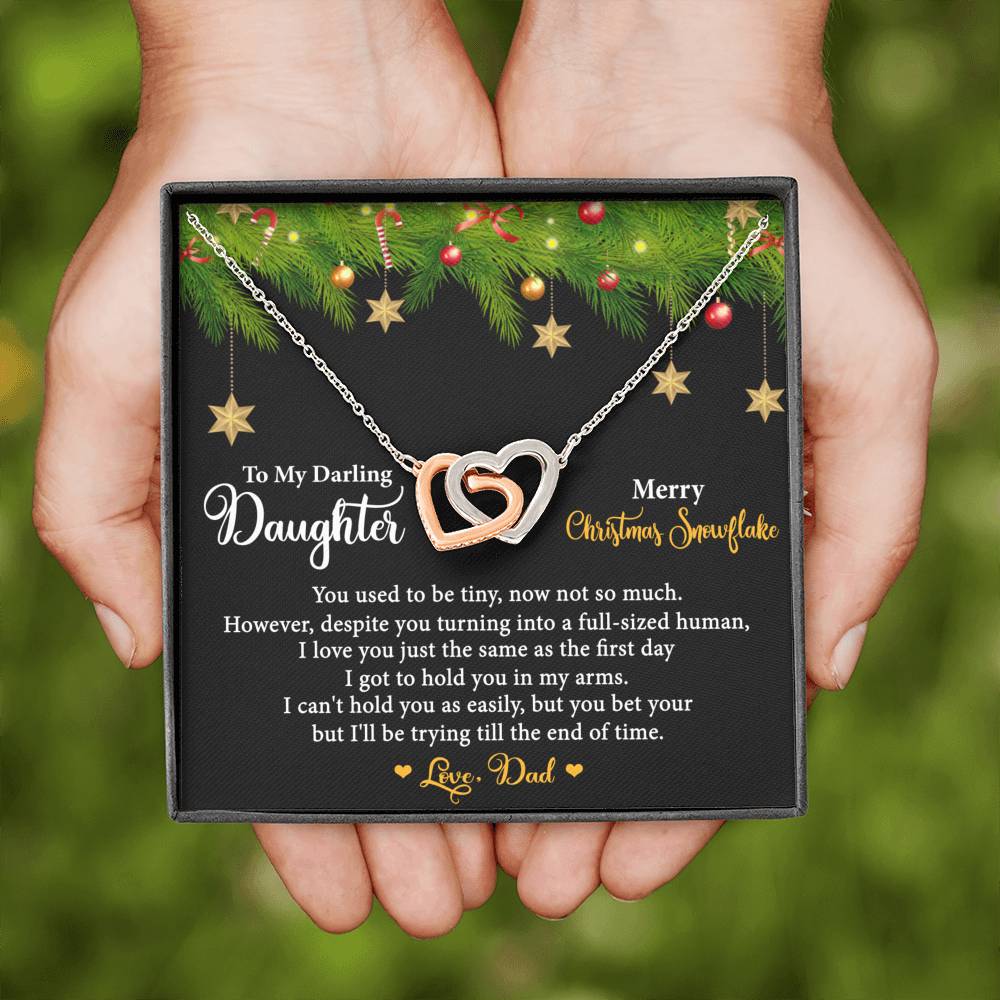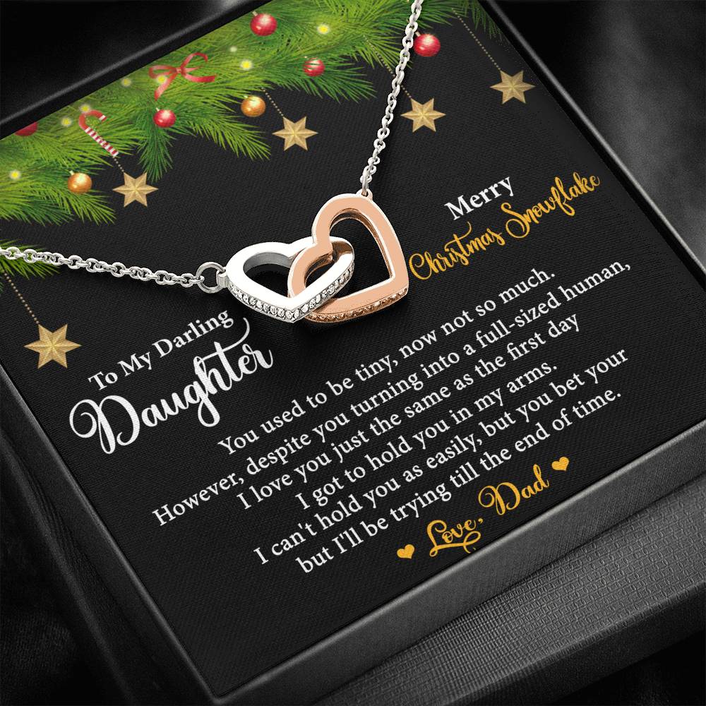 Two hearts embellished with Cubic Zirconia stones, interlocked together as a symbol of never-ending love. Made with high quality polished surgical steel. Cable chain measures 18 inches with a 4 inch extension, and fastens with a lobster clasp.