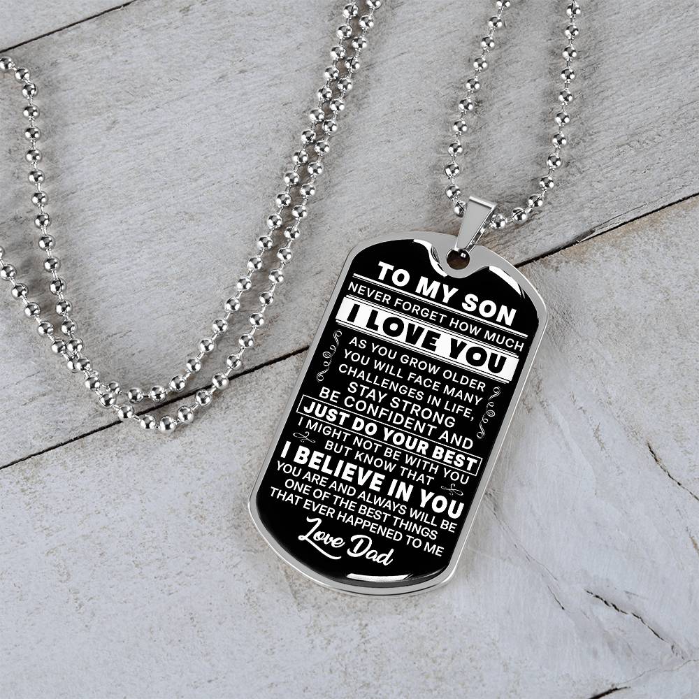 This meaningful dog tag necklace is a daily reminder of your love, support, and belief in him. Designed to inspire confidence as he grows older, it’s a powerful keepsake he can carry through every stage of life. Made from durable stainless steel for long-lasting wear.